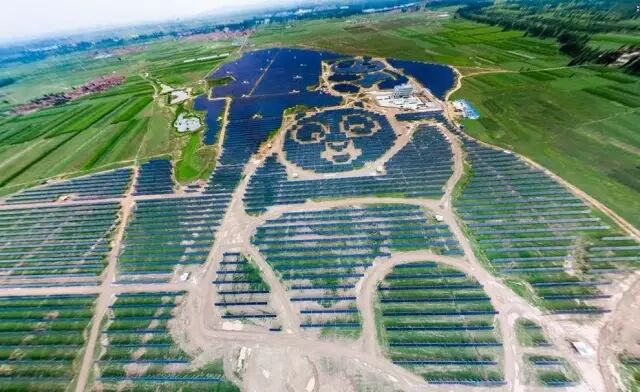 日前,布局在山西大同的全球首座熊猫光伏电站正式并网发电。熊猫电站是由熊猫绿能集团于2016年发起建设,并携手联合国开发计划署共同推广的绿色能源示范项目。图为熊猫电站,即外形依据国宝熊猫来设计的电站。 电站由深浅两种颜色组成:熊猫的深色部分,比如爪子和耳朵,由单晶体硅太阳能电池组成;浅色部分由薄膜太阳能电池组成。