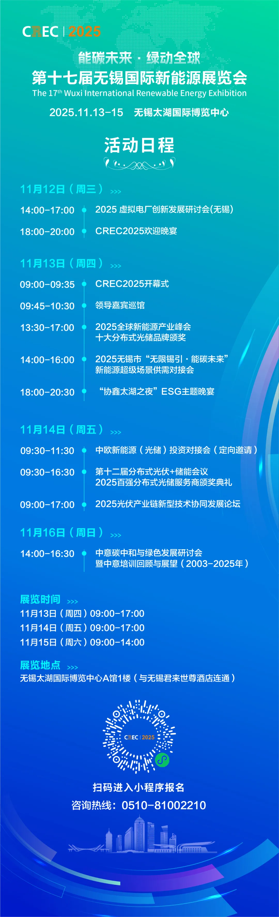 金秋时节、太湖之滨,一场引领新能源未来的行业盛会即将启幕。从光伏储能到综合能源,从零碳园区到虚拟电厂,从阳台光伏到交能融合,这些创新元素正悄然重塑我们能源消费的日常图景。2025年11月13日至15日,由无锡市人民政府主办的第十七届无锡国际新能源展览会(CREC2025)将在无锡太湖国际博览中心如期举行。 经过多年培育,CREC展会已成为政企沟通、行业交流与科普宣传的重要平台。本届展会在往届基础上,以“能碳未来·绿动全球”为主题,带来六大创新元素,为参展客商和观众呈现一场新能源领域的顶级行业嘉年华。 新能源超级场景发布 引领行业发展方向 本届展会,无锡市发改委将联合长城企业战略研究所等机构,举行2025无锡市“无限锡引·能碳未来”新能源超级场景供需对接会,推动技术、场景与资源的深度联动。届时,虚拟电厂接入、零碳园区建设、工业生产降碳等一大批聚焦新能源和低碳零碳领域的场景机会将向行业发布,为光伏、储能等场景能力企业精准匹配场景机会。 国内首次集中展示阳台光伏 在本届CREC展会上,全国首个阳台光伏专题展区将集中展示。这一创新展区精准捕捉了当前阳台光伏在欧洲市场年增速超200%的爆发式增长趋势。阳台光伏正使户用光伏走向“家电化”、“场景化”。每一个家庭、商户都是绿色能源的生产者与消费者。该展区将集中展示阳台光伏系统、微型逆变器、智能支架等阳台光储解决方案。同期还将举办“2025阳台光储交流会”,将邀请行业领袖、技术大咖和政策专家,共同研讨产品标准、安全与商业模式,推动这一细分领域良性发展。 首次举办“中欧新能源(光储) 投资闭门对接会” 为助力中国新能源企业开拓海外市场,本届展会将首次举办“中欧新能源(光储)投资闭门对接会”。这一高端闭门对接活动将为中国新能源企业进入欧洲市场搭建精准对接平台。欧洲作为全球能源转型的重要市场,对中国新能源产品和技术有着旺盛需求。此次闭门对接会将为企业提供第一时间了解欧洲市场政策、技术标准和商业机会的宝贵平台。届时,European Solar、土耳其Consulta等欧洲客商将带来吉瓦级真实光储项目资源。 ![]() 低空经济引爆“交能融合”展区 “交能融合”展区作为本届展会另一大亮点,将集中展示新能源在交通领域的创新应用。牧羽航空、航天国器等低空经济企业将带来一系列创新产品和技术,展示新能源在交通领域的广阔应用前景。此外,该展区还将展示固态电池电动车、充换电设施、氢能无人机等新能源交通领域的最新产品和技术,展现“风光储充氢”一站式解决方案的创新活力。 CREC海外联络点再次扩容 为提升展会的国际化水平和全球影响力,CREC2025期间将进一步扩大海外联络点布局。届时,将新增澳大利亚、阿联酋、几内亚等海外联络点,这些海外联络点将作为中国新能源企业与全球市场之间的桥梁,为国内企业“走出去”和国外项目“引进来”提供更加便捷的通道。此前,CREC已在荷兰、土耳其、匈牙利、马来西亚、新加坡建立了首批海外联络点,为企业走出去发挥着积极作用。 一批新项目、新技术 将在展会期间呈现 本届展会期间,将有一批新项目、新技术和新应用集中亮相。新项目方面,由UNDP、UNOPS等国际组织发起的联合国/国际组织可持续采购服务信息分享与能力建设项目将设立无锡工作站,帮助新能源企业获取国际公共项目采购信息。江阴复睿将发布2026年度每年采购量500MW组件、逆变器、电线电缆以及 1GWh储能采购计划。新技术方面,协鑫集团将展出钙钛矿叠层电池最新产品,朗新科技将展出能源AI大模型,上能电气将展出构网型储能逆变器,江苏携创将展示组件板块互联技术......同时,一大批先进技术和方案将在同期举行的会议上呈现。 从家的阳台到广阔天空,从中国企业到全球市场,CREC2025正以实实在在的“新”意,搭建一个通向绿色未来的能源之桥。 ![]() |