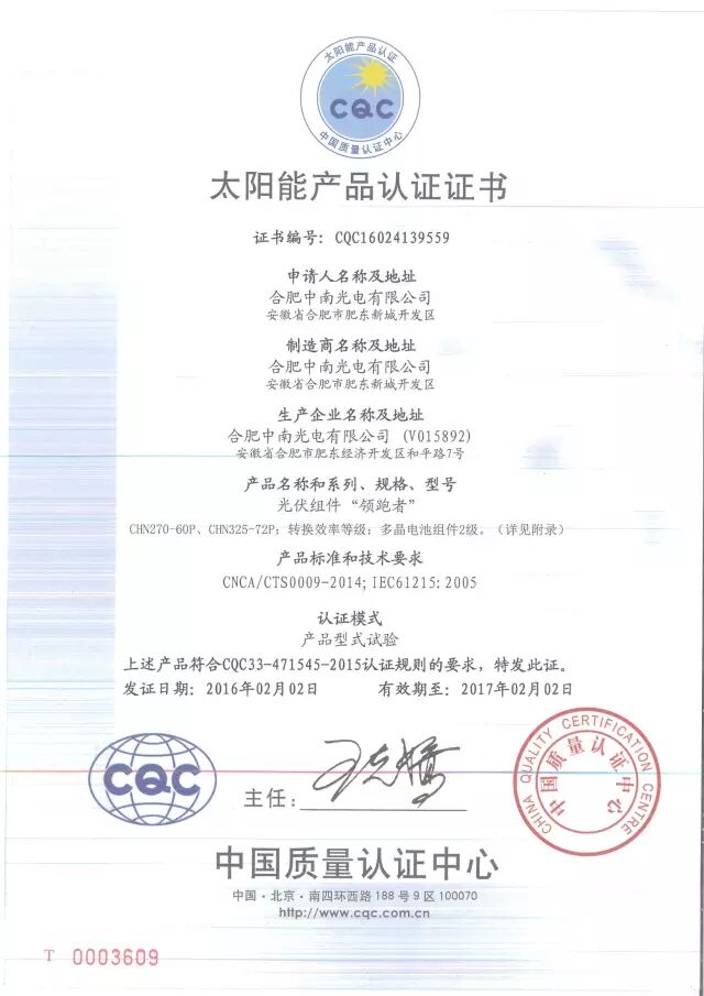 新年伊始,中南光电即收获了期盼已久的“领跑者”认证,可谓是开门大吉,为新的一年开了个好头,大大鼓舞了中南的士气。 2015年上半年,国家能源局、工业和信息化部、国家认监委联合印发《关于促进先进光伏技术产品应用和产业升级的意见》(国能新能【2015】194号)文件,该文件从市场引导、产品准入要求、实施领跑者计划、检测认证等多个方面提出了具体意见和目标方向,旨在引领我国先进光伏技术产品应用和产业升级,开创我国光伏产业可持续健康发展新格局。准入标准与领跑者计划成为行业关注的焦点,此举也表明了国家加速淘汰技术落后产品,支持先进技术产品扩大市场的决心。 领跑者认证计划,在中国光伏认证史上,应该是一种里程碑式的跨越。自国家三部委提出“领跑者”计划起,已有多家企业响应号召通过认证。作为光伏行业领先品牌,中南光电一直兢兢业业孜孜不倦奋斗在光伏事业的前线,致力于发展光伏科技,提升组件效率。本次中南光电凭借高可靠高转换效率以及对良好品质的追求,顺利成为通过认证的“领跑者”之一。 本次取得“领跑者”认证后,中南光电将继续充分发挥“先进带动”效应,通过对组件等发电设备的关键性能指标提出更高要求,来促进自身及行业企业采取新的技术、工艺和生产线,提升光伏制造业的技术水平,进而提高光伏电站的发电能力,最终降低发电成本,致力于促进整个光伏产业的健康持续发展。 |