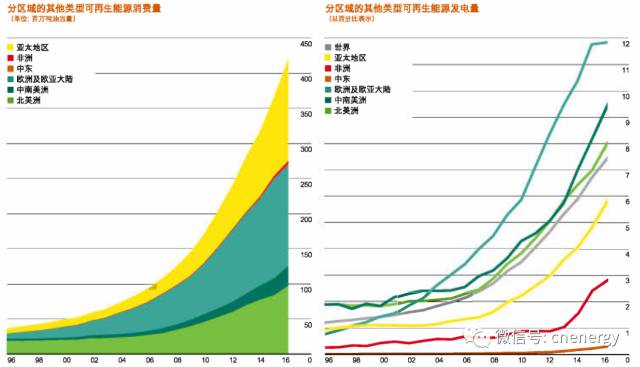 2016年,世界煤炭产量下降了6.2%,2.31亿吨油当量,是有史以来最大的降幅。中国的产量下降了7.9%,1.4吨油当量,也是有史以来最大的降幅。美国的产量下降了19%,8500万吨油当量。全球煤炭消费下降了1.7%,连续第二年下降。最大的跌幅在美国(3300万吨油当量),中国(2600万吨油当量,下降1.6%)和英国(1200万吨油当量,下降52.5%)。 天然气 ◆2016年全球天然气消费量增加1.5%,低于2.3%的十年平均增长率。不过,天然气消费量在欧洲(增长6%)、中东(增长3.5%)和中国(增长7.7%)增长强劲。 ◆全球天然气产量仅增长0.3%,除金融危机期间之外,这是34年以来产量增长最低的一年。由于天然气价格较低,美国的天然气产量也出现了页岩气革命开始以来的首次下滑。而在澳大利亚由于新建液化气设施投产,天然气产量大幅增加。 ◆受澳大利亚新建输出设施的拉动,全球液化气进/出口增长6.2%。随着更多新建项目投产,液化气生产有望在未来3年内增长约30%。 ◆液化气贸易增长反映出一个正在进行中的持续根本性转变,即全球天然气市场的整合度提高,同时也在向更具竞争力和灵活性的市场转变,越来越多的天然气交易量所依据的合约期限较短或数量较少,甚至没有合约。 截至2016年底,全球天然气探明量为186.6万亿立方米,轻微增加了1.2万亿立方米(0.6%)。和原油储量一样,该储备足以保证多于50年(52.5年)的生产需要。缅甸(+0.7万亿立方米)和中国(+0.6万亿立方米)是储量增长的主要贡献者。 全球天然气产量仅增长了0.3%,或者210亿立方米,达到35520亿立方米。北美洲产量的减少(—210亿立方米)部分抵消了澳大利亚(190亿立方米)和伊朗(130亿立方米)的强劲增长。 可再生能源 ◆2016年可再生能源继续保持最快的增长速度。不考虑水电,可再生能源增长了12%(包括风电、地热、太阳能、生物质能、垃圾发电和生物燃料,不包括水电)。虽然低于15.7%的可再生能源十年平均增长水平,但这仍是有史以来最大的年增加量(增加5500万吨油当量,超出煤炭消耗量的减少量)。 ◆可再生能源目前仅占一次能源的4%。 ◆可再生能源增长一半以上来自风电,风电在2016年的增长为16%。太阳能增长30%。虽然太阳能仅占可再生能源产出的18%,但太阳能的增长量占可再生能源全部增长量的约三分之一。 ◆2016年,中国超越美国成为世界最大的可再生能源生产国,而亚太地区则超越欧洲和欧亚大陆成为可再生电力最大的生产地区。 其他燃料 核电和水电 ◆核能产量在2016年增长1.3%,即930万吨油当量。中国核能产量年增长24.5%,核电所有净增长均来自中国。中国的增量达到960万吨油当量,是2004年以来(相比于任一国家)的最大增量。 ◆水电在2016年增长2.8%,增长量为2710万吨油当量。最大的增量仍来自于中国,美国紧随其后。 2016年,世界核能发电量增长了1.3%,约合930万吨油当量。所有净增长都来自中国,发电量增长24.5%(960万吨油当量)。日本和比利时的发电量也增长强劲,而法国发电量大减(—8.1%,—770万吨油当量)。水电增长了2.8%(2710万吨油当量),略低于2.9%的十年平均值。中国(4%,1090万吨油当量)和巴西(6.5%,550万吨油当量)是增量的最大来源国。 2016年可再生能源发电量(不包含水电)增长了14.1%,略低于十年平均增速,但是,这是有记录以来最大增量(5290万吨油当量)。风能提供了一半以上的增量,而太阳能则贡献了几乎三分之一的增量。尽管它仅占总量的18%。亚太地区贡献了60%的增量,中国取代美国成为世界上最大可再生能源生产国。 生物质燃料 2016年世界生物质燃料产量增长了2.6%,远低于14.1%的十年平均增长率,但高于2015年0.4%的增速。美国贡献了增量的最大部分(193万吨油当量)。全球生物质乙醇产量仅增长了0.7%,部分是由于巴西产量的下降。生物质柴油产量上升6.5%,其中印度尼西亚占一半以上的增量(114.9万吨油当量)。 |