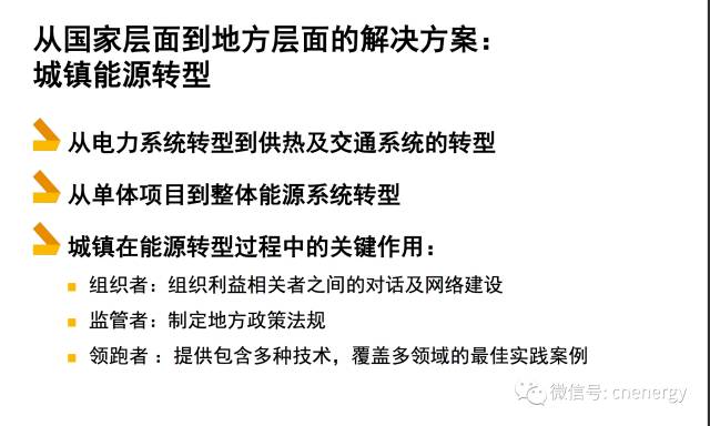 4、城镇能源转型 库尔曼表示,世界气候保护离开中国是不行的,不只因为中国是一个大国,还因为在创新方面中国做的非常好。 德国可再生能源署与中国的合作已经有11年了,两国领导人对能源转型都非常重视,政治领导人的态度对能源投资的影响很大,只有政治领导人坚定,投资人才会安心。 问及德国城镇化转型在能源应用方面有什么可以借鉴?库尔曼表示没有统一的解决方案,只有因地制宜的解决方案,这点非常重要。 对城市的基本数据、未来发展、能源特点包括可再生能源的发展特点做出详尽的分析,才能做出优化方案。没有千篇一律的解决方案,一定是一城一方案。据了解德国可再生能源署跟河北省已展开了合作,为河北大气污染治理提供方案。 |