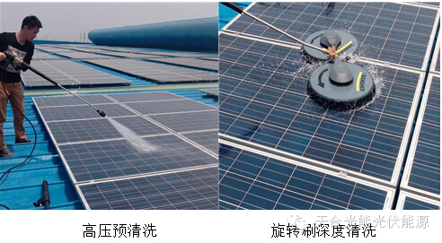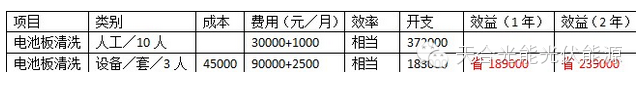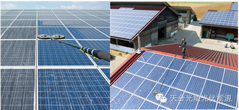 现在国内太阳能技术越来越先进,越来越多的企业和家庭开始安装太阳能屋顶已达到环保省电的理念,但是现在国内太阳能电池板清洗还没有人能做成功,尤其在西部,这种清洗机的出现更迫在眉睫,风沙都把太阳能电池板表面给覆盖了,让其不能很好的光伏发电。 第一、 为什么要用设备而不是单纯的人工来清洗? 从理论上讲:人工清洗的效率与效果无法和设备相提并论。人工清洗是无论如何也做不到用设备清洗的洁净度。虽然采用人海战术可以提高工作量。就现在的人工费用来说,相信谁也不会这样做! 技术角度讲:该清洗系统的使用跟普通的清洗工具一样,没有什么难度。当设备启动(主机设备电源开关打开)后。就进入工作或待机状态。需要进行那个进程的清洗工作,只要去操作什么具体的设备就可以了。所以使用者无须是进行过特别培训者或者是高技术人员操作。不需要企业在人员配备上增加额外的开支! (全系列设备配备图) 其实安全更是一个不容忽视的重要问题!操作人员越多越是容易出差错。尤其是高空作业! 第二、清洗步骤:1、观察、分析2、冲洗、刷洗3、过水清洗。 1、观察、分析 首先在清洗前查看要清洗的电池板的污染程度。如果是轻度污染—没有颗粒物,只有灰尘。我们建议只单独进行冲洗或者刷洗作业就可以了。这样不仅节约、节省人力物力,同时也会延长电池板表面保持一定光亮度的年限。增加其寿命! 2、冲洗、刷洗 当需要深度清洗时如果发现表面有颗粒物或者不能确定没有。那么必须先进行冲洗,冲洗掉颗粒物后再刷洗。为什么要刷洗?因为冲洗作业只可以出去表面的浮尘于颗粒物。尤其是颗粒物。其效果可以说是非常完美。但是对于有一定黏度或者是由于化学反应而产生的污染物就不很彻底。如果任期发展久而久之就再也无法清洗掉这些污染物了。 3、过水清洗 这个步骤很重要!千万不要为了省事在刷洗完后不用清水冲洗一遍。冲洗时会把刷洗过程中清洗下来的微小尘埃、颗粒以及一些其他杂物彻底用水冲离电池板表面。 第三、操作与人员配置 1、一般高空作业(像清洗建筑物顶部的电池板)我们按一套设备配3个人为一组。地面人员负责主机的操作与房屋上面人员的支持。高空清洗作业(必须配备人身安全防护)需要2人。不仅是为了安全监护,也可以轮换作业、休息。这样的配合无论是清洗效率还是设备使用率都是比较高的;地面光伏电站的清洗工作比较简单,一人或两人都可以。对工作效率影响不大。 第四、效率与效益 旋转刷清洗光伏电站的太阳能电池板清洗效率高、清洗效果也非常显著。不仅为企业缩减开支、节省费用,最为重要的是可以达到节水的目的。这对于那些建设在干旱、少雨的缺水地带、沙漠地带的光伏电站尤为重要。对其清洗工作无疑是个福音。 1、效率对比 普通人工清洗如果要求达到用设备清洗同样的清洗效果(人工清洗只能是接近设备清洗效果),熟练的清洗工人每小时最多也只能清洗20-40平方。按这个标准计算:2个熟练清洗工人每个月工作25天,每天工作8个小时,正好清洗完1MW的电池板。大约7500平方左右;一套标准配置设备的效率是400-600平方(根据清洗位置、区域可以选择1-3人操作)。就是说用设备清洗1MW的太阳能电池板最多不过15个小时! 2、效益对比 普通的人工清洗(自来水管加拖把)每小时耗水2方水(普通水管的出水量)我们假设10人一组(这样效率可以接近一套设备的清洗效率)中有5人在同时用水,那么每小时需要用水10方。采用旋转刷清洗只要800-1300L水(0.8-1.3方)就足够了,加冲洗的话最多也不过2.6方水。就按这个核算:清洗400个平方就能节约10-2.6=7.4方水。按水价1.75元/方(全国平均价)计算这个费用足够支付用电费用(设备主机采用5.5-9.2KW)那么只要比较其它固定开支就可以看出那个更加节省费用了。(下表中:工人月薪按3000元、工具开支1000元/月;设备投资45000元开支2500元/月)。 从上面的效益表中我们可以看出:如果你需要5个清洗工人。那么就不如买一套设备核算。这仅仅是从成本开支来讲。如果考虑到清洗效果。那可就不只这些了。因为如果长期清洗效果不佳将导致发电效率降低,这个数字更加可怕!就拿1兆瓦的电站来说(发电效率下降1%)假设:如果在光照时间最短的冬季按4个小时有效发电时间计算那么损失的电量价值也接近900元/天。可谓不算不知道一算吓一跳!造成电池板损毁带来的损失恐怕也是一个不小的数字! |