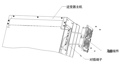 30KW风冷逆变器的风扇工作寿命要远长于逆变器,通常情况下不需要对风扇进行维护,即便出现需要更换的情况,也具备良好快捷的可拆卸性,如图5。 图5 30KW风冷逆变器风扇可拆卸结构图